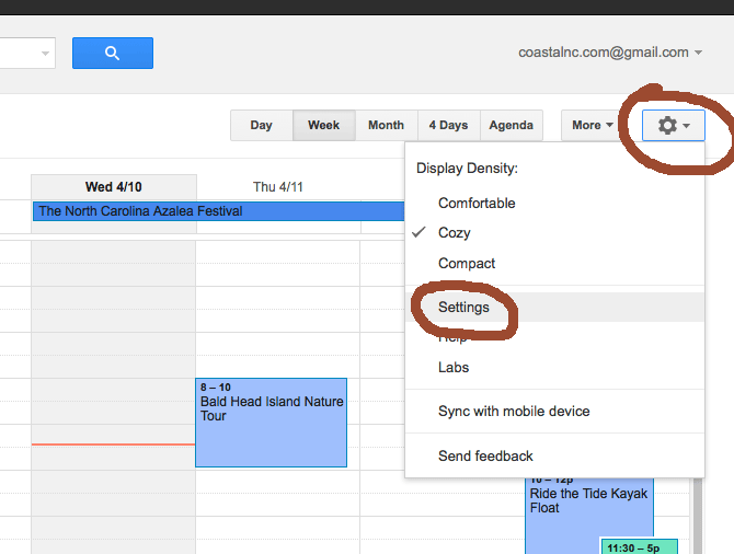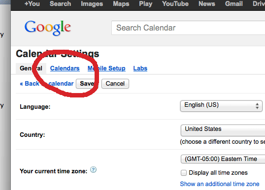 Step 1: Log into your gmail calendar account. In the menu at the top of the screen click on “Calendar”.